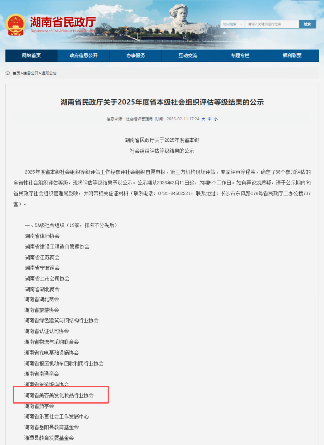 近日,湖南省民政厅发布《关于确认湖南省律师协会等88家社会组织评估等级的决定》,湖南省美容美发化妆品行业协会成功获评“5A级社会组织”。这是全省社会组织评估的最高等级,标志着协会规范化建设与服务水平迈上了新台阶。